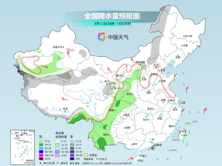 今起四天(3月12日至15日),较强冷空气继续向东推进,雨雪也会随之发展,明后天将为此轮过程最强降雪时段,青海、甘肃、陕西、山西等地部分地区有大到暴雪。其中明天,黑龙江西北部、青海东部、甘肃东南部、宁夏中南部、陕西西北部、川西高原北部等地部分地区有大雪,局地暴雪。 除了雨雪,这股冷空气还将带来大风、沙尘天气。预计今天新疆东部和南部、内蒙古西部、甘肃西部、青海北部、宁夏中北部等地的部分地区有扬沙或浮尘天气,其中,新疆南疆盆地东部、内蒙古西部、甘肃西部局地有沙尘暴或强沙尘暴。